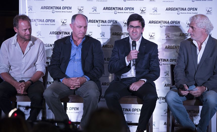 La presentación estuvo a cargo de (izq. a der.) Martín Jaite (Director del torneo), Miguel Nido (responsable del ATP porteño), Sebastián Sicardi, Director de Marketing y Comunicación en Peugeot Argentina y el periodista Eduardo Puppo.