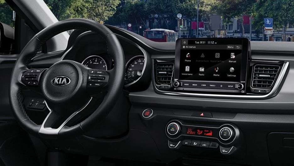 Puertas adentro, el nuevo Kia Rio muestra un nuevo diseño de asientos tapizados en cuero con una trama más elegante, manteniendo el confort de las butacas delanteras envolventes y del apoyabrazos central. Los detalles en cuero también están presentes en el volante multifunción y en la palanca de cambios.