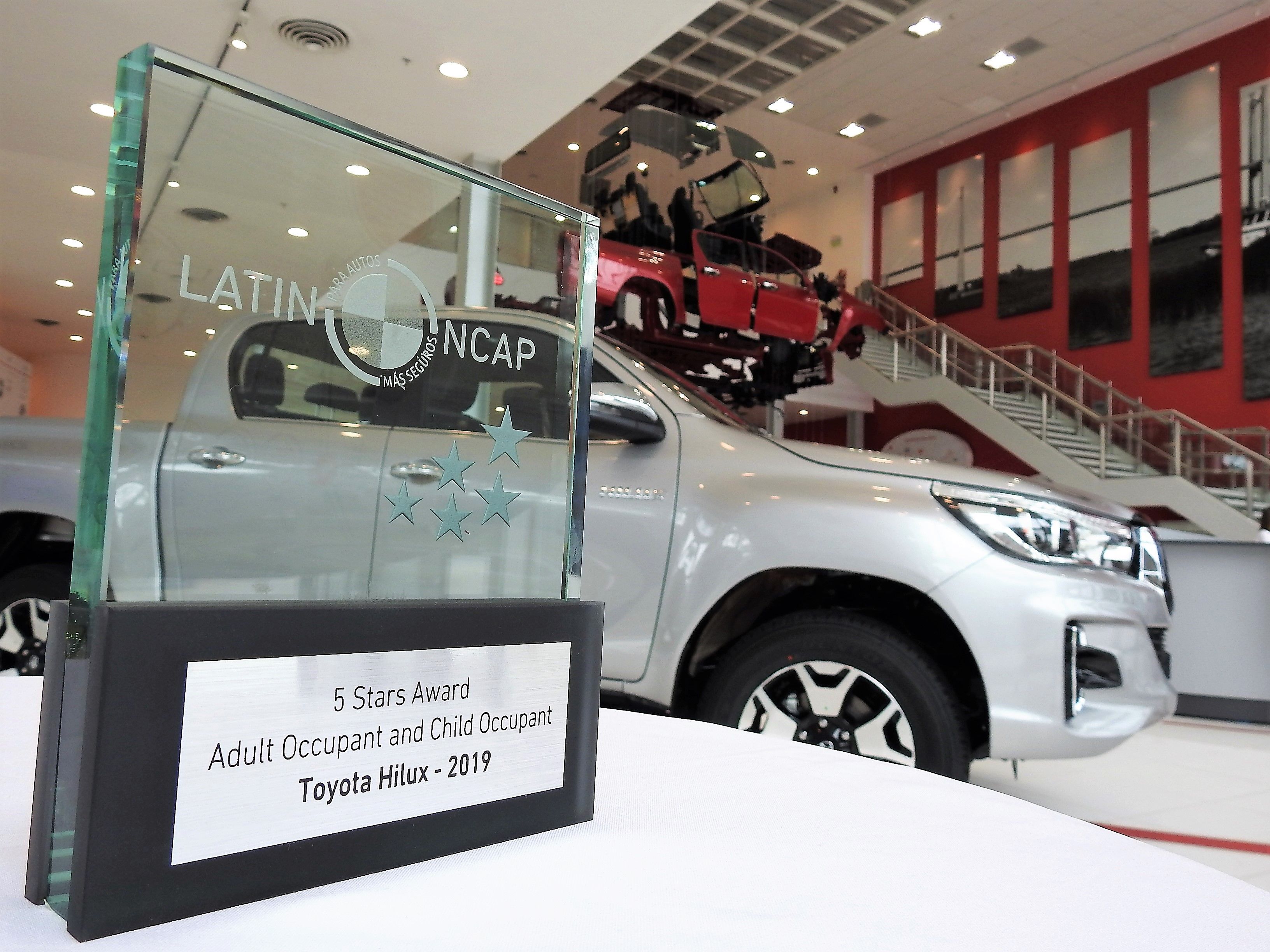 Los resultados de los crash test le permitieron a la marca japonesa recibir el trofeo de Latin NCAP en reconocimiento a la obtención de la máxima puntuación para Protección de Ocupante Adulto e Infantil en sus modelos SW4 y Hilux doble cabina, según el último y más estricto protocolo de pruebas de la entidad regional.