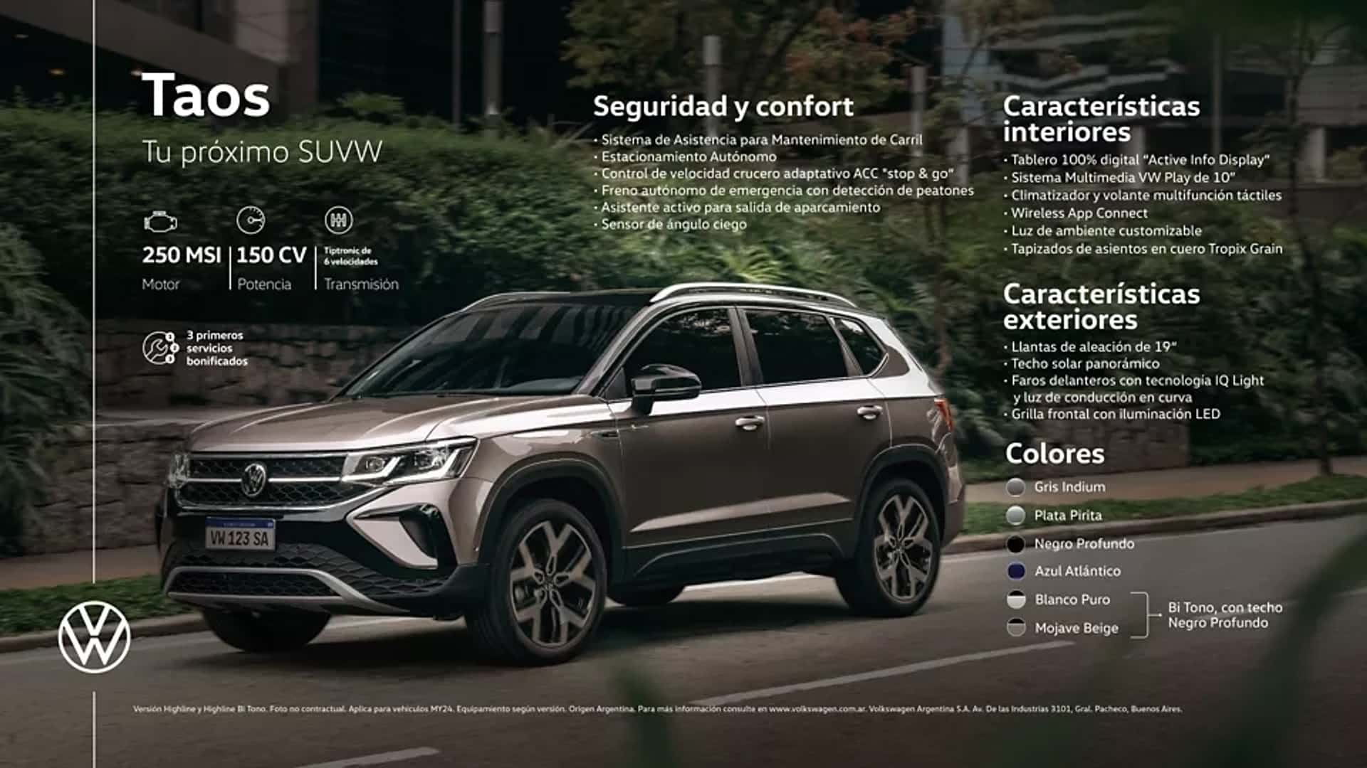 El Volkswagen Taos fue lanzado al mercado argentino en junio de 2021, es orgullosamente fabricado en la plata de General Pacheco y forma parte de la familia SUVW, junto con T-Cross, Nivus y Tiguan Allspace, vehículos protagonistas de sus segmentos.