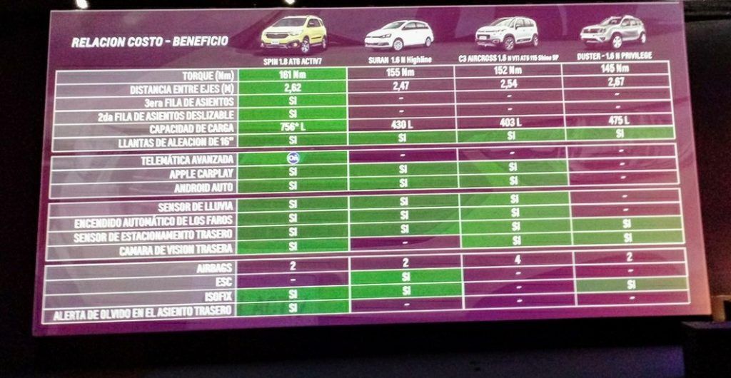Mirá la interesante comparativa que establece Chevrolet con Spin frente a sus rivales.