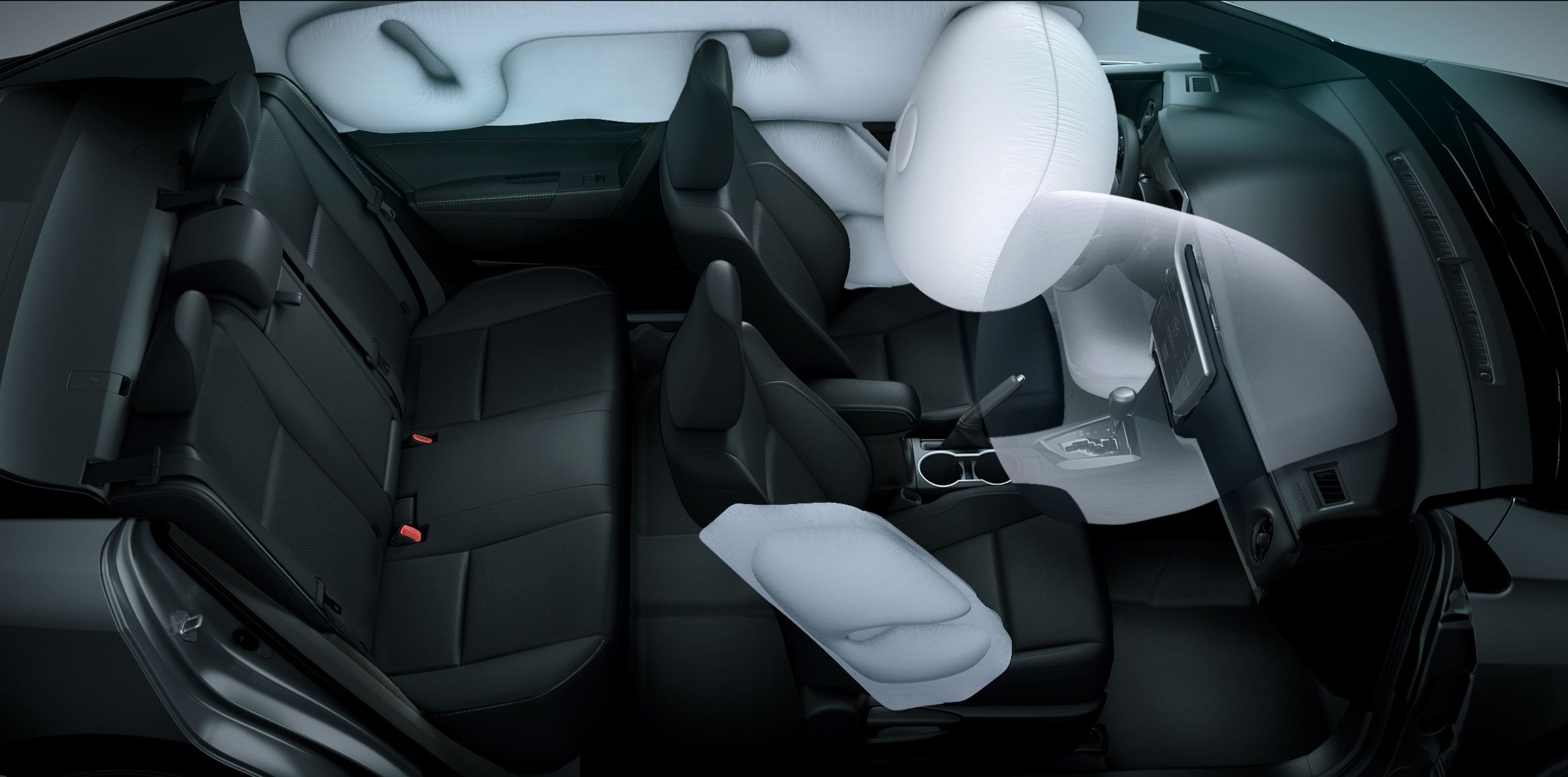 En relación al equipamiento de seguridad pasiva, todas las versiones del nuevo Corolla están equipadas con 7 airbags: dos frontales, dos laterales, dos de cortina y uno de rodilla para el conductor. En cuanto a la seguridad activa, el vehículo incorpora de serie control de estabilidad (VSC), control de tracción (TRC), asistente de arranque en pendientes (HAC), asistente de frendado (BA) y la activación de luces de frenado de emergencia ante un accionamiento repentino y brusco de los frenos.