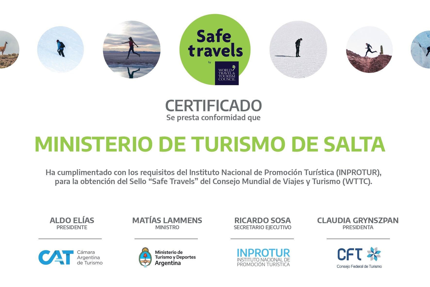 Salta es un destino seguro para viajar ante la propagación de la pandemia COVID-19 en el mundo. Así lo certificó el sello otorgado por el WTTC. Se trata de un reconocimiento de vital importancia para la provincia para el que trabajó el sector público y privado en los distintos protocolos.