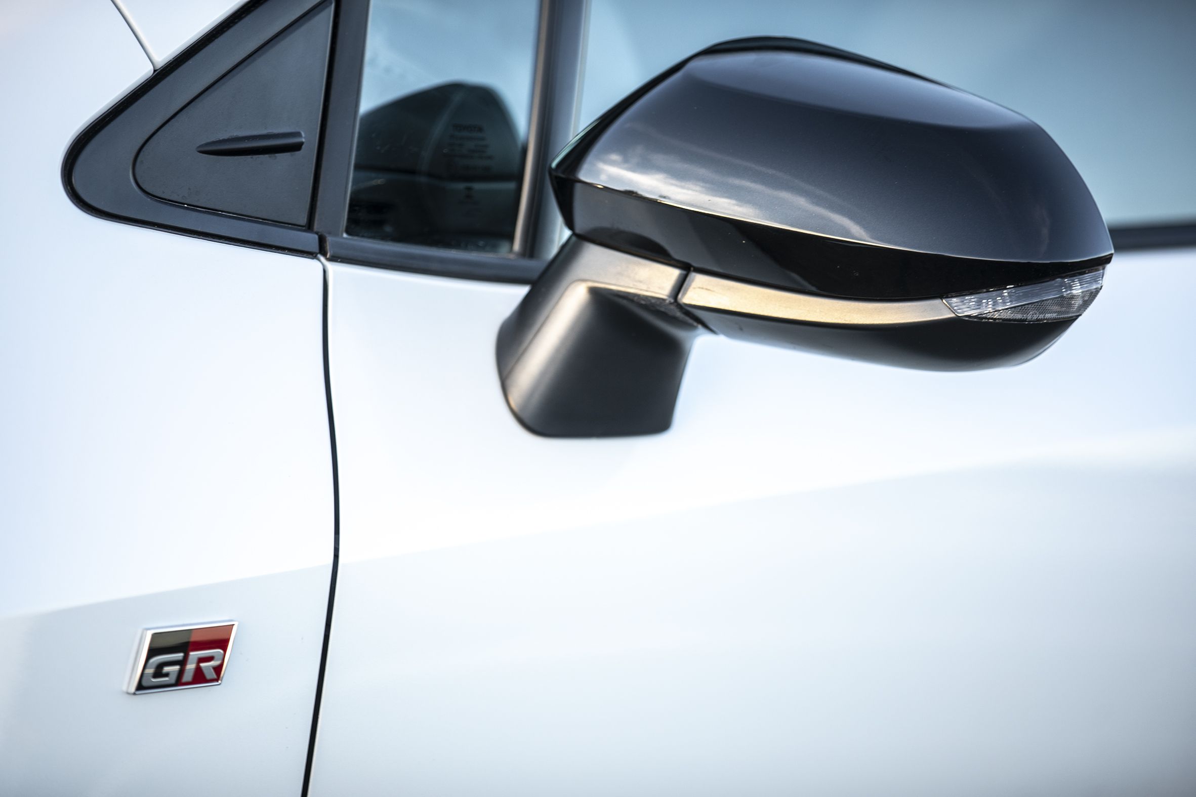 DETALLES ESTÉTICOS. El Corolla GR-S se diferencia por el paragolpes delantero exclusivo con detalles aerodinámicos, el techo color negro metalizado, los espejos exteriores en color negro y las llantas de aleación de 17″. En el interior, la personalización se basa en el sistema de encendido por botón con diseño Gazoo Racing, los asientos tapizados de cuero natural y ecológico combinado con Ultrasuede y costuras en rojo.