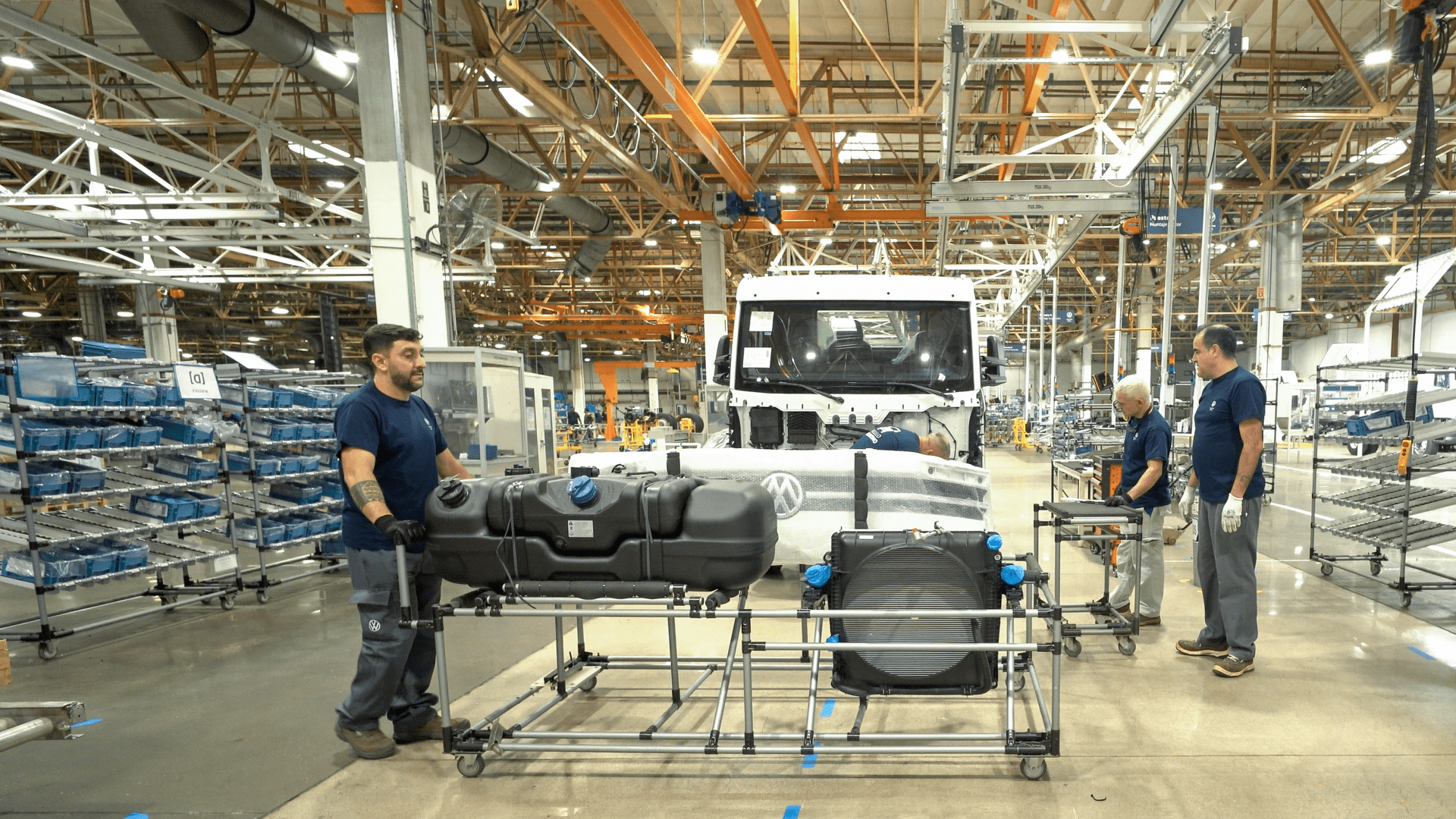 La línea de ensamblaje se instala en un área exclusiva de 15.000 metros cuadrados para los camiones VW Delivery 9.170 y 11.180, los VW Constellation 17.280 en las versiones chasis-cabina y camión articulado, y el chasis del Volksbus 15.190 OD, todos modelos ya homologados para el mercado argentino.