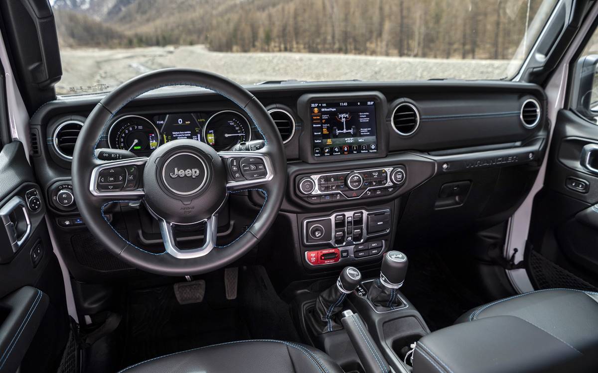 El sistema de propulsión híbrido del Wrangler 4xe combina un motor turboalimentado 2.0 de 4 cilindros con dos motores eléctricos y un paquete de baterías de alto voltaje. Están asociados a una caja de cambios automática de ocho velocidades. Ofrece 21 millas de propulsión solo eléctrica y sin emisiones.